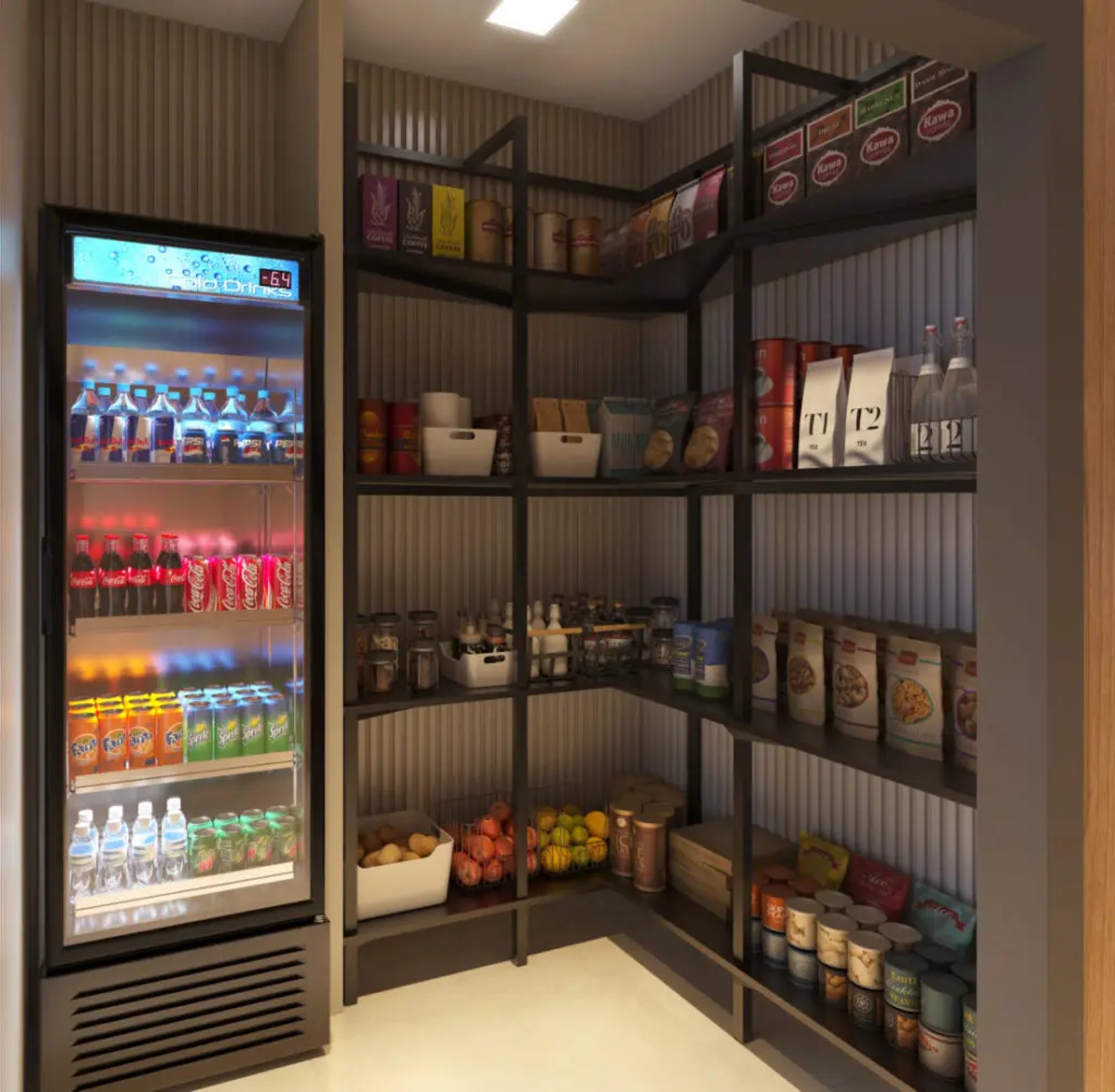 Será providenciada toda a infraestrutura necessária para o funcionamento, como prateleiras, geladeiras expositoras, displays, terminais de pagamento, entre outros.
